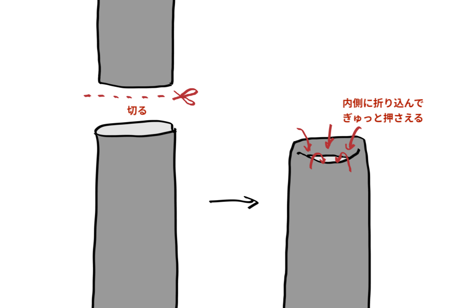 口を内側に折り込んでおけば、中身も落ちてきづらいです。